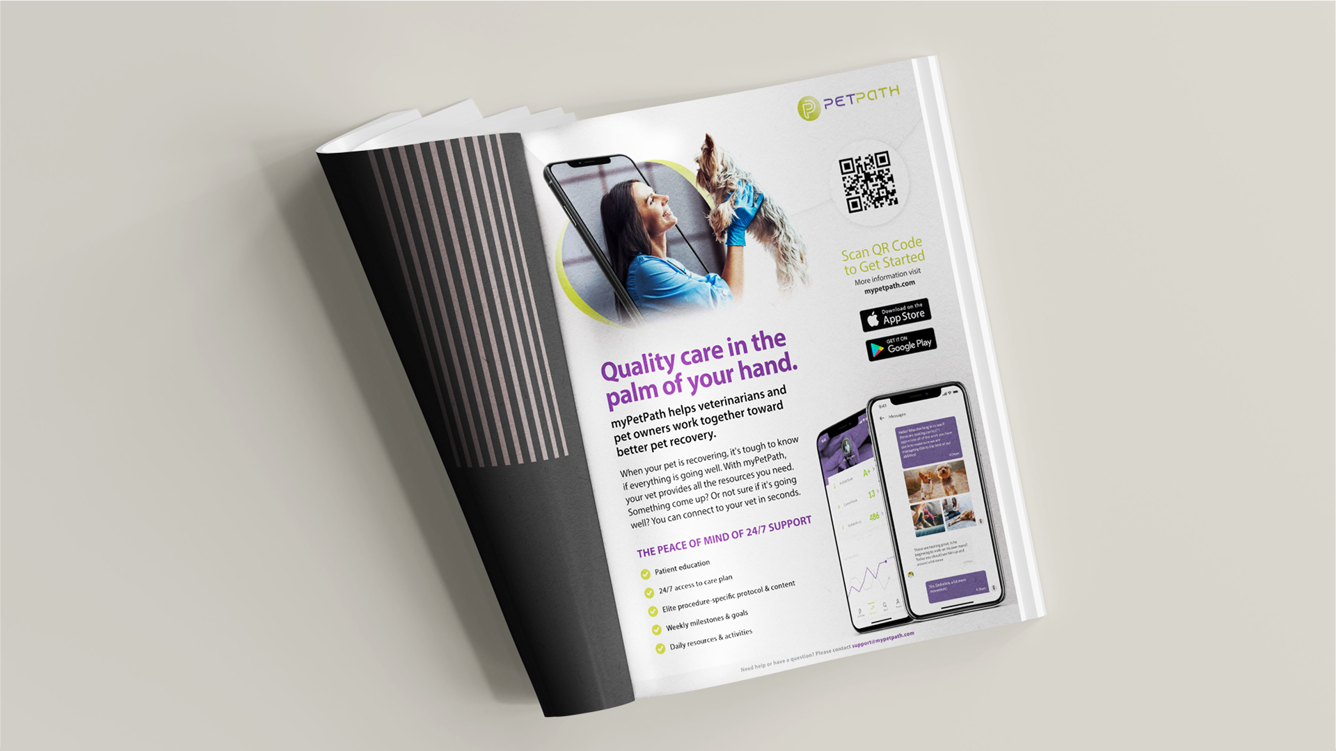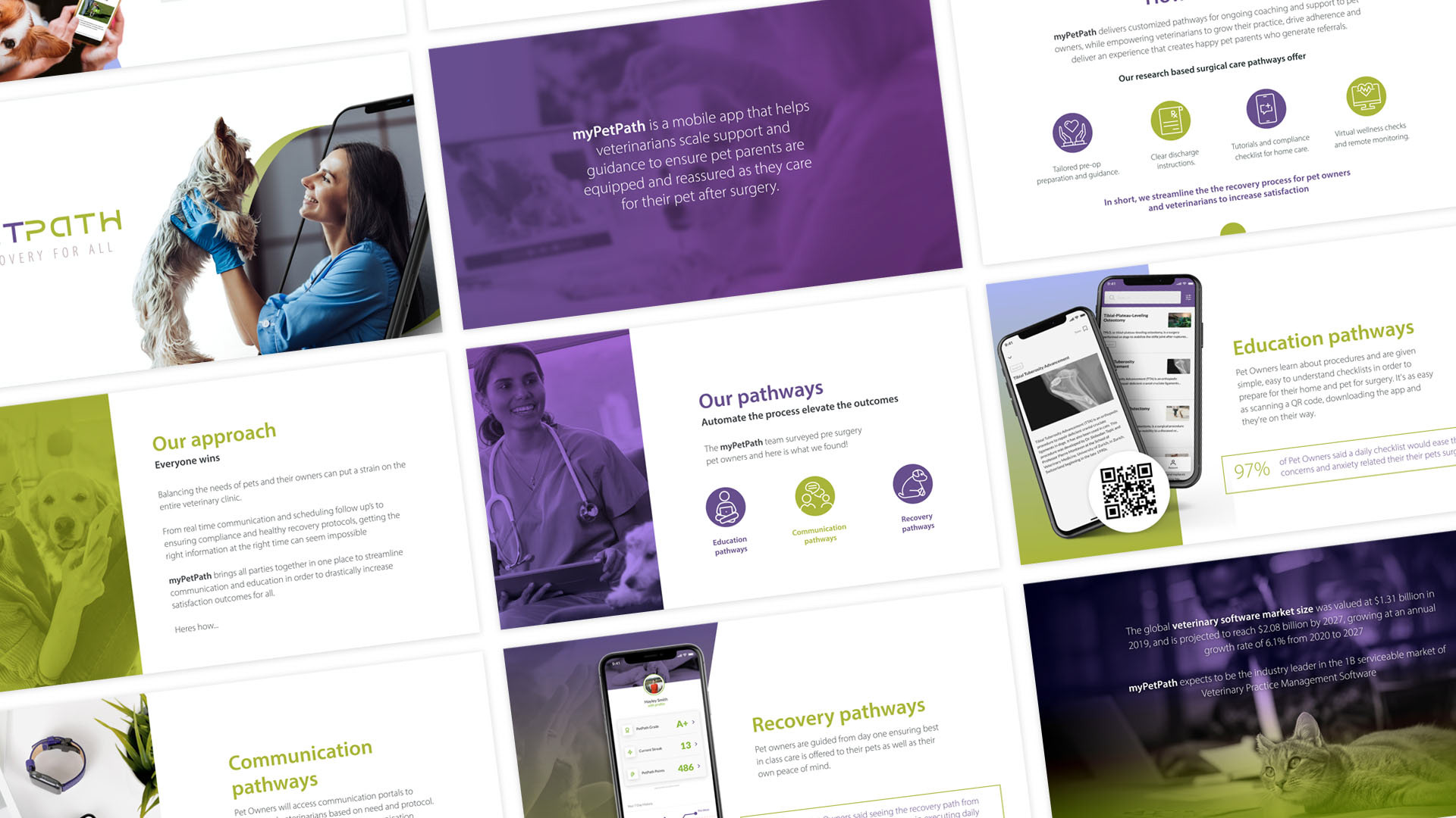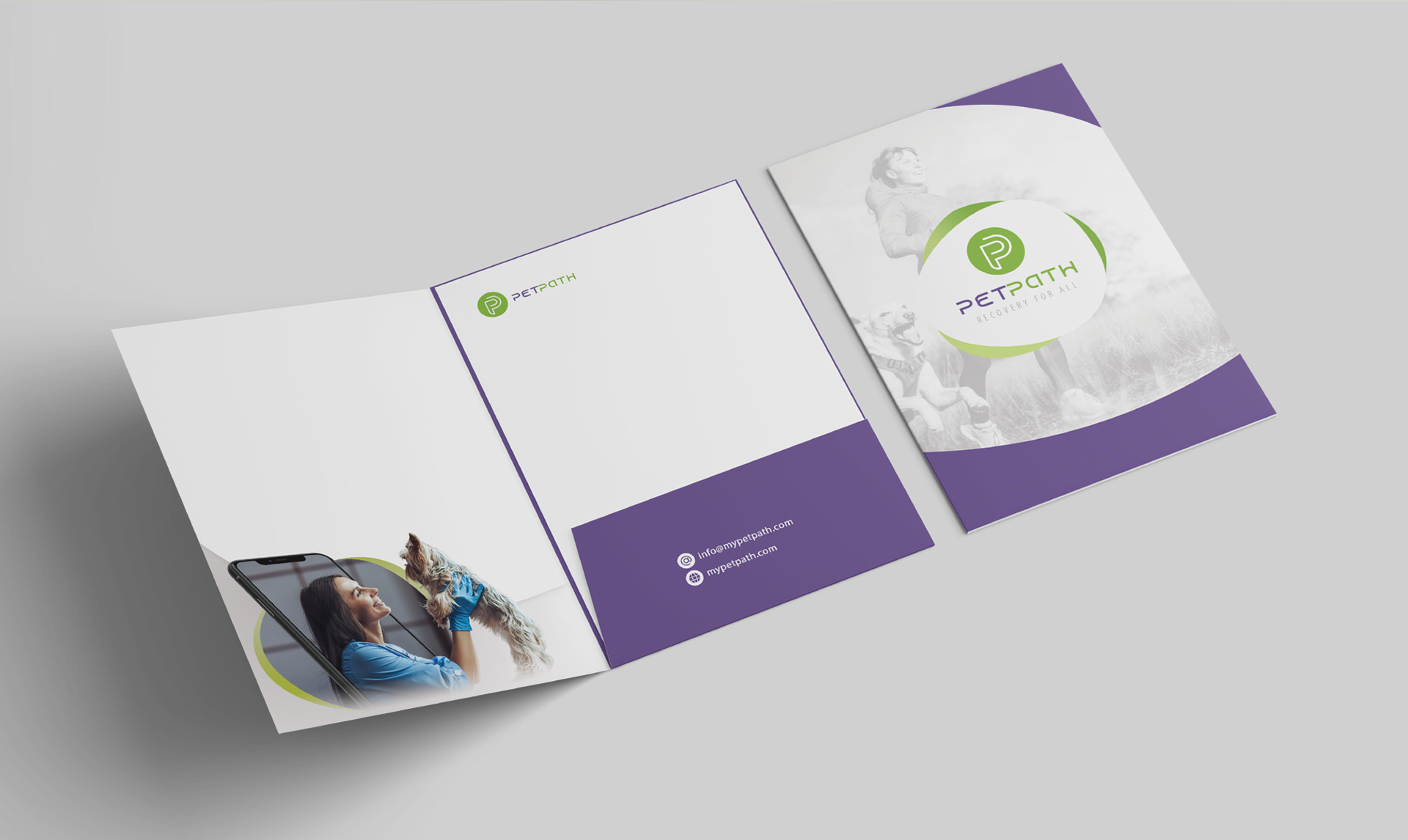 For Pet Path, we were responsible for the branding and the design of various materials. This included presentations, screen designs, social media graphics, brochures, advertisements, and the company folder.